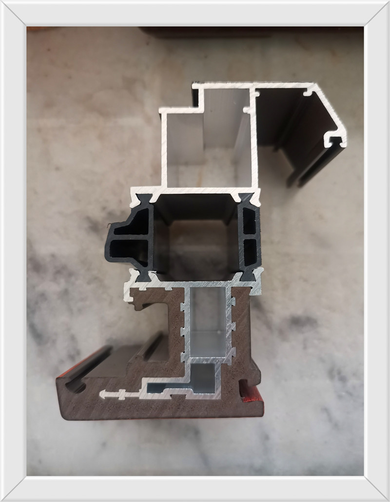 铝塑共挤型材在铝衬表层包覆了一层3.5mm的发泡塑料作为保温层,众所周知,保温最好的材料是发泡材料,因此我们利用国际上最新的硬质结皮微发泡工艺技术,在铝衬共挤时,将受热溶化的塑料均匀地通过模具发泡包覆在铝衬上,形成泡孔均匀、密度适合、结合良好的发泡保温层,采用独特的模具结构和配方(德国引进)在塑料表面同时成型出一层0.5mm以上的硬质塑料层,这层硬质塑料层又完整均匀地包覆住发泡塑料层,保证型材外观的坚硬和光滑,达到和硬质塑料门窗一样的硬度和表面要求的标准。